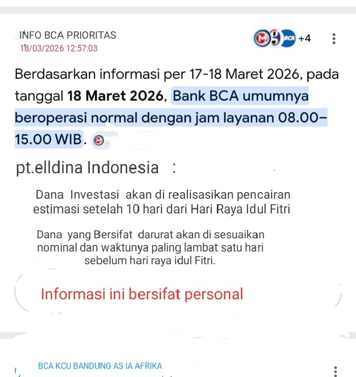Ia juga menyebut adanya informasi bahwa pencairan akan dilakukan menjelang Lebaran, bahkan disertai klaim operasional bank tetap berjalan normal hingga sore hari. Namun, seluruh janji tersebut kembali tidak terbukti.